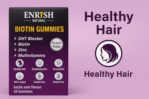 Support strong hair, glowing skin, and healthy nails from within with Enrish Natural Biotin Gummies, formulated with essential vitamins and natural ingredients for maximum effectiveness.